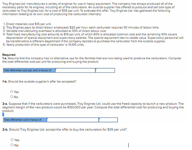 Solved Troy Engines Ltd Manufactures A Variety Of Engines Chegg Com